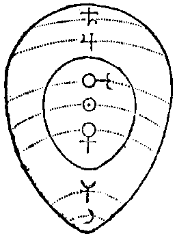 The Egg-Shaped Aurbis. Of course, Dee himself had some choice words about this structure, and preferred a more circular formation without the yolk and shell division. And in case you’re wondering, from top to bottom, that’s Saturn, Jupiter, Mars, the Sun, Venus, Mercury, and the moon. At least, I think so.