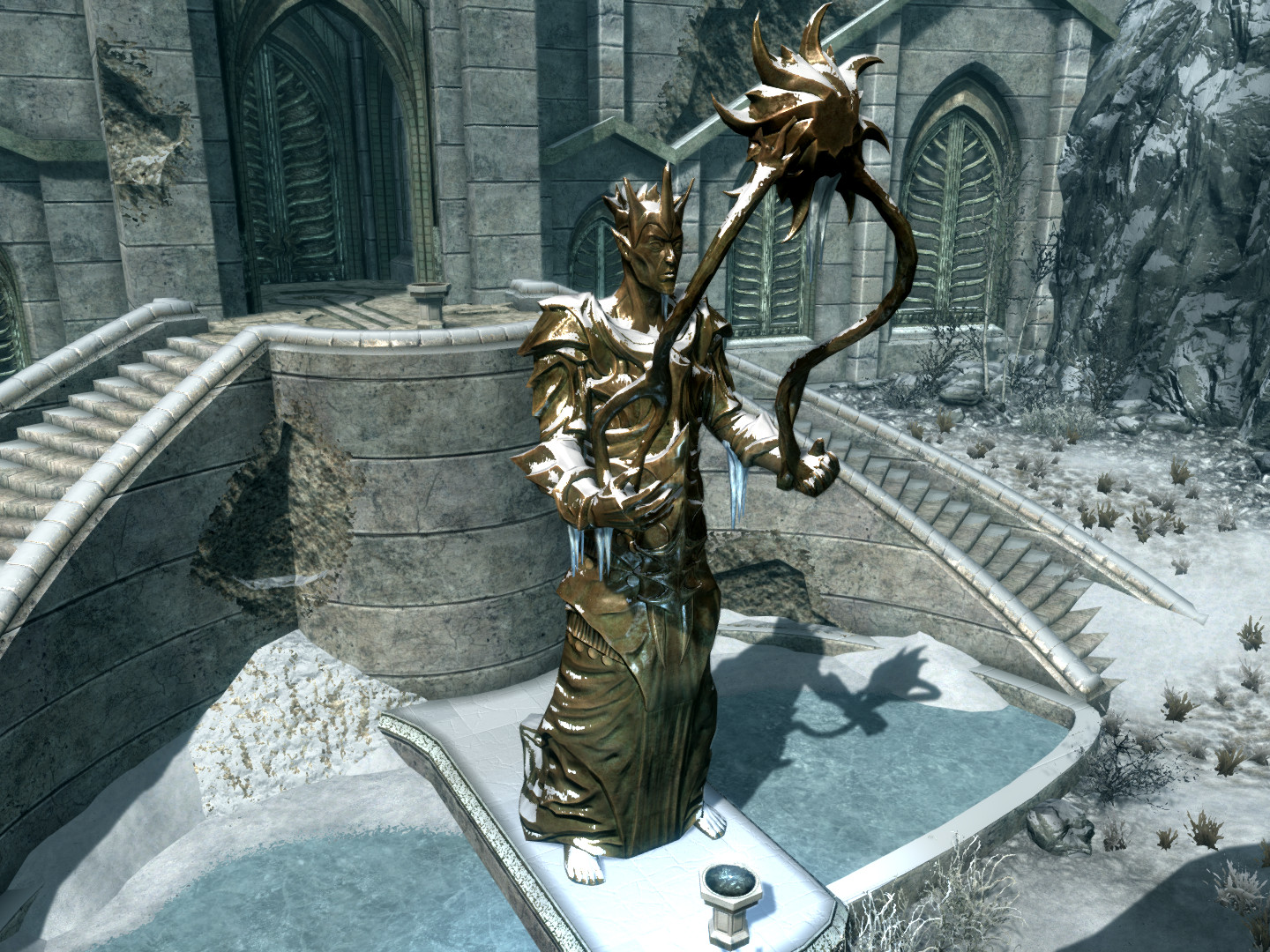 The elves never seem to describe these gods as Dragons. In fact, Auri-el always shown as an elven king. This leads me to think he was some kind of Dragonborn figure, just without all the dragon aesthetics and shouting. Elves don’t think of time as a dragon, perhaps because they long for the period before creation, when the spirits were unshaped. To them, Magnus had the right idea and they honor Anui-el and Auriel in their pre-fallen forms. Note the Snow Elves’ solar imagery and the High Elven golden bird imagery, evoking Magnus and Auriel’s ascent. (Please correct me if I say something wrong, my knowledge of High Elven religion is shaky at best.)